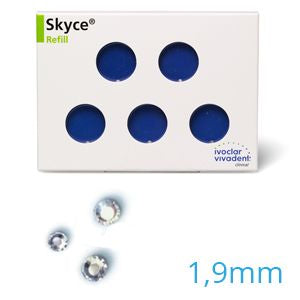 De tandjuwelen Skyce kunnen gewoon, zonder voorbehandeling, op het tandoppervlak worden geplakt, met behulp van beproefde materialen. Met Skyce krijgt iedere lach een extra glinstering. De steentjes van kristalglas zijn verkrijgbaar in twee verschillende formaten: Ø 1,9 mm en Ø 2,4 mm.