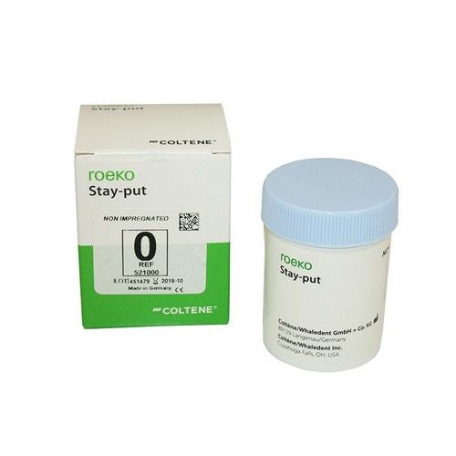 Impregnation with aluminium chloride hexahydrate promotes quick haemostasis without causing any cardiovascular problems. Stay-put impregnated is colour coded for easy distinction of sizes and to contrast well with the gingiva.
